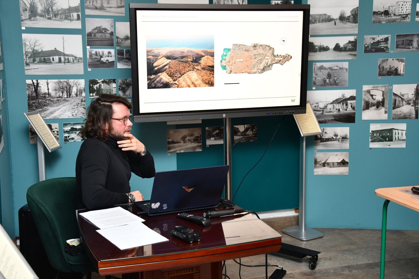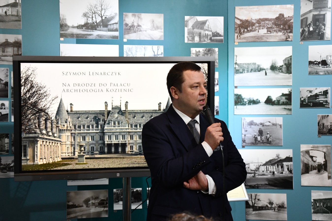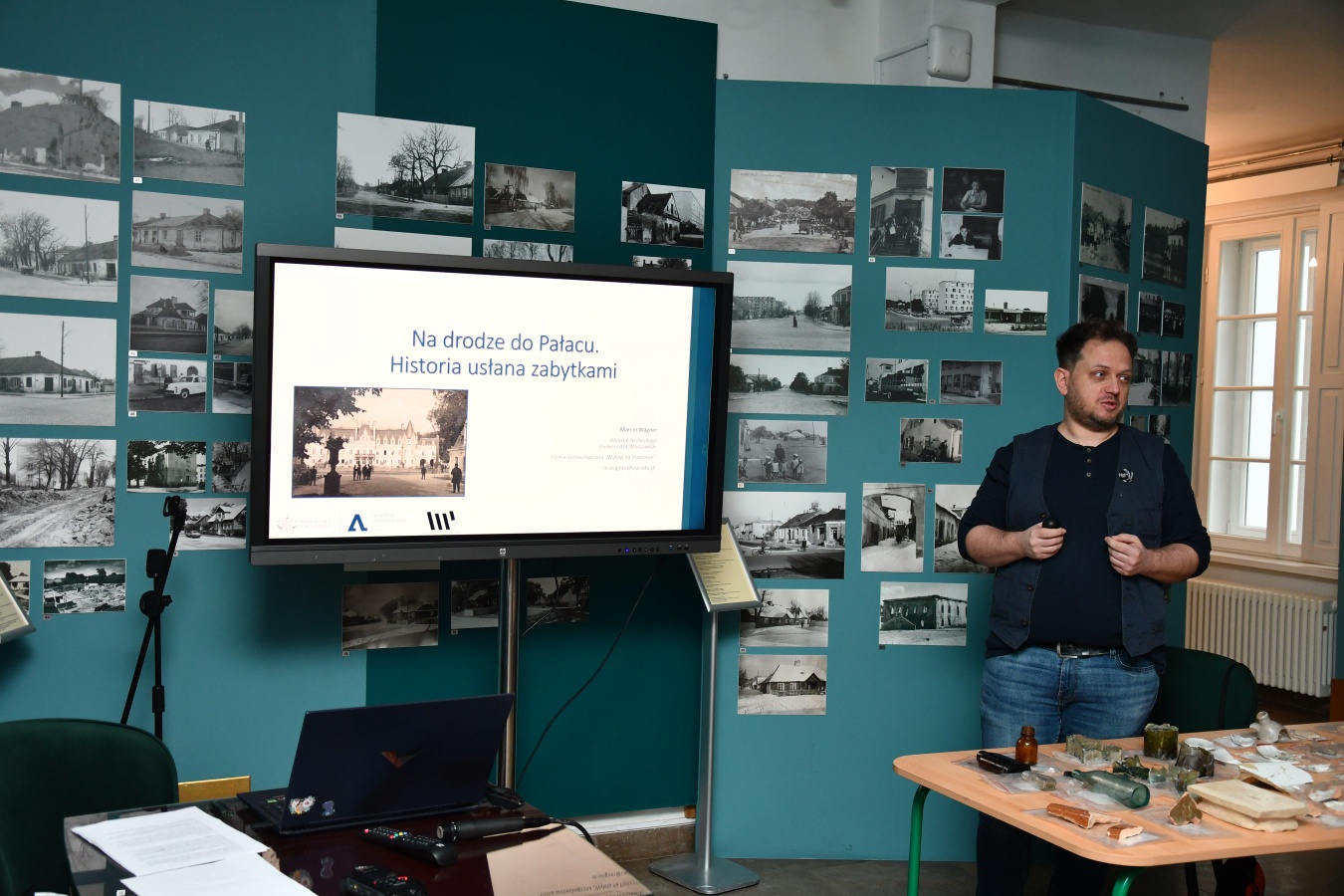 Dr Szymon Lenarczyk w swoim wystąpieniu pt. „Na drodze do pałacu" opisał rolę, jaką archeolodzy (w tym on sam) odegrali, sprawując nadzór podczas prac rewitalizacyjnych w kozienickim zespole pałacowo-parkowym w roku 2024.