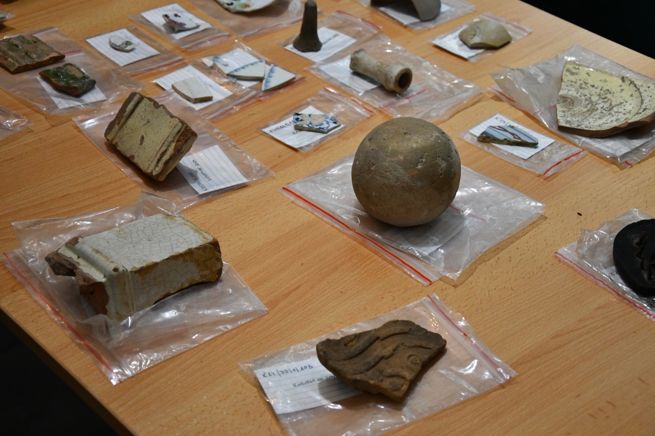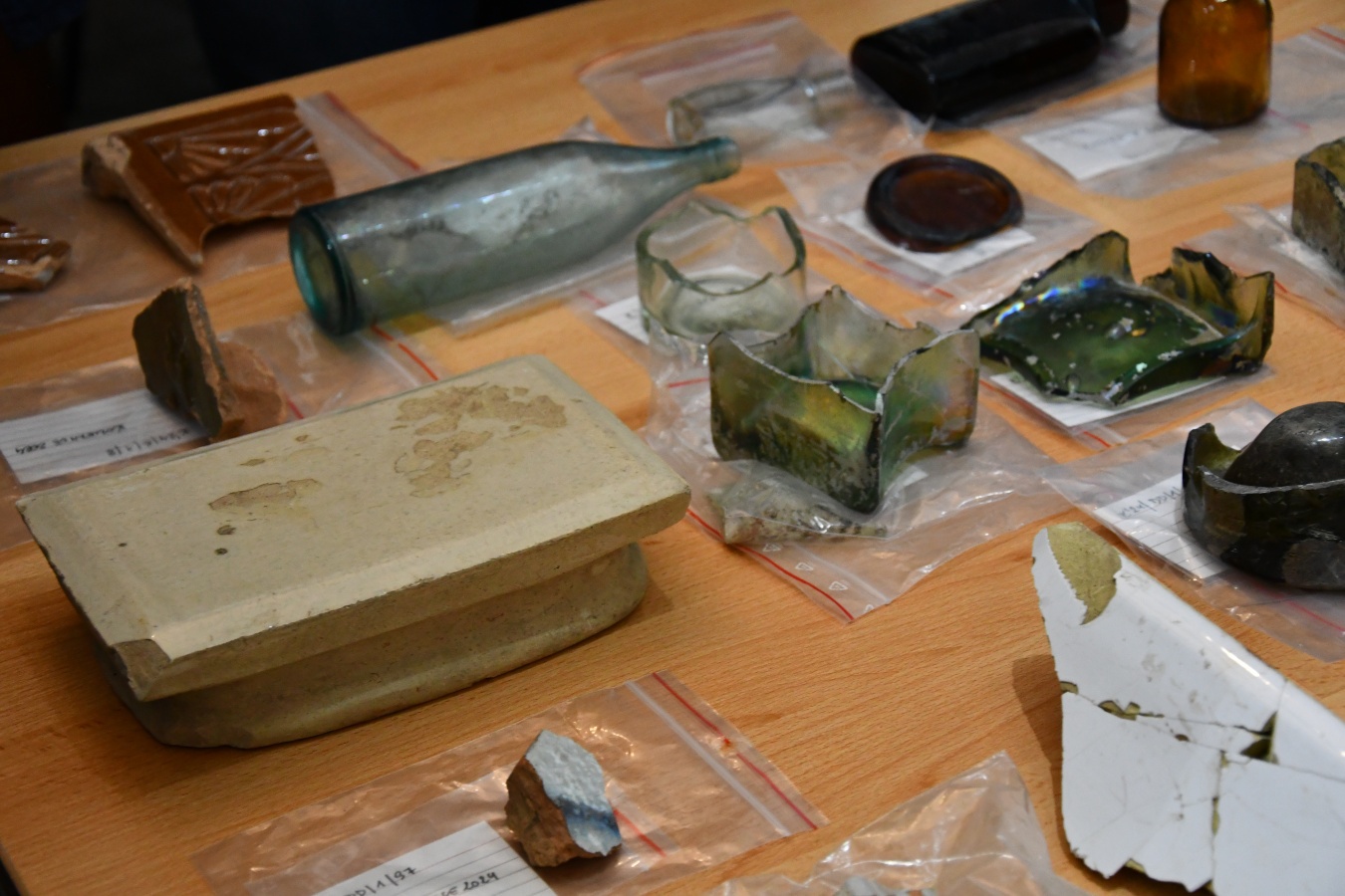 O ile wystąpienie dr. Lenarczyka miało charakter ogólny, Marcin Wagner, który zabrał głos jako następny, wychodził od detali. Posługując się zdjęciami oraz przywiezionymi przez siebie artefaktami opisał, co konkretnie znaleziono podczas prac i jak odkrycia te zostały zinterpretowane. Największą grupę znalezisk stanowiły naczynia związane z konsumpcją (w tym trunków), wywodzące się z różnych epok i możliwe do ułożenia w porządku chronologicznym. Nie zabrakło także drobnych elementów architektonicznych, z których badacze również potrafili wiele wywnioskować.