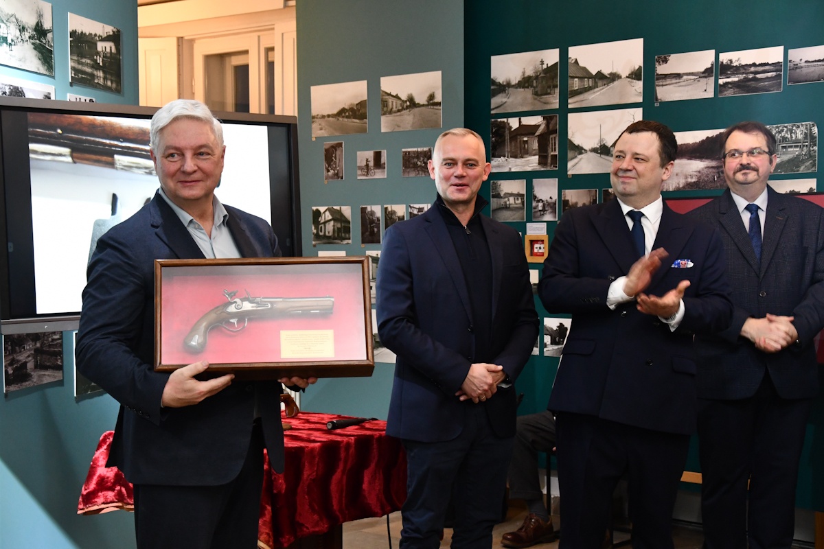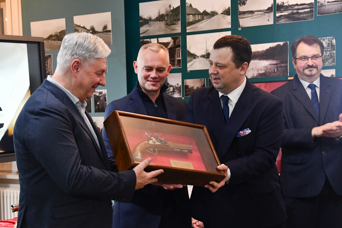 Po tych słowach nastąpiła niespodzianka — na ręce burmistrza podarowany został trzeci z zrekonstruowanych pistoletów.