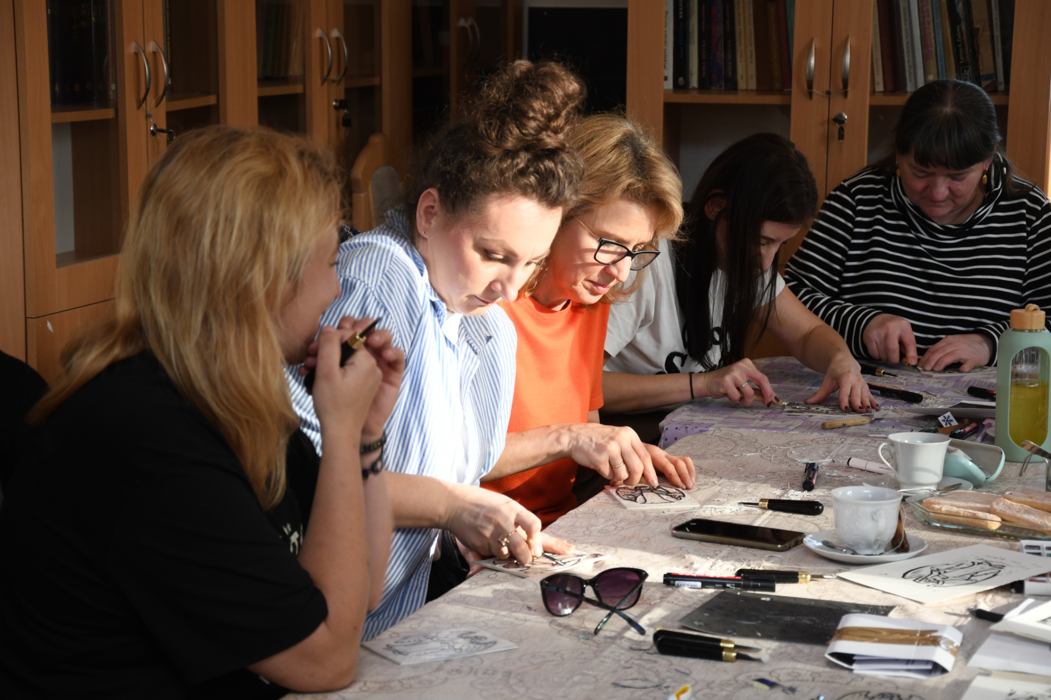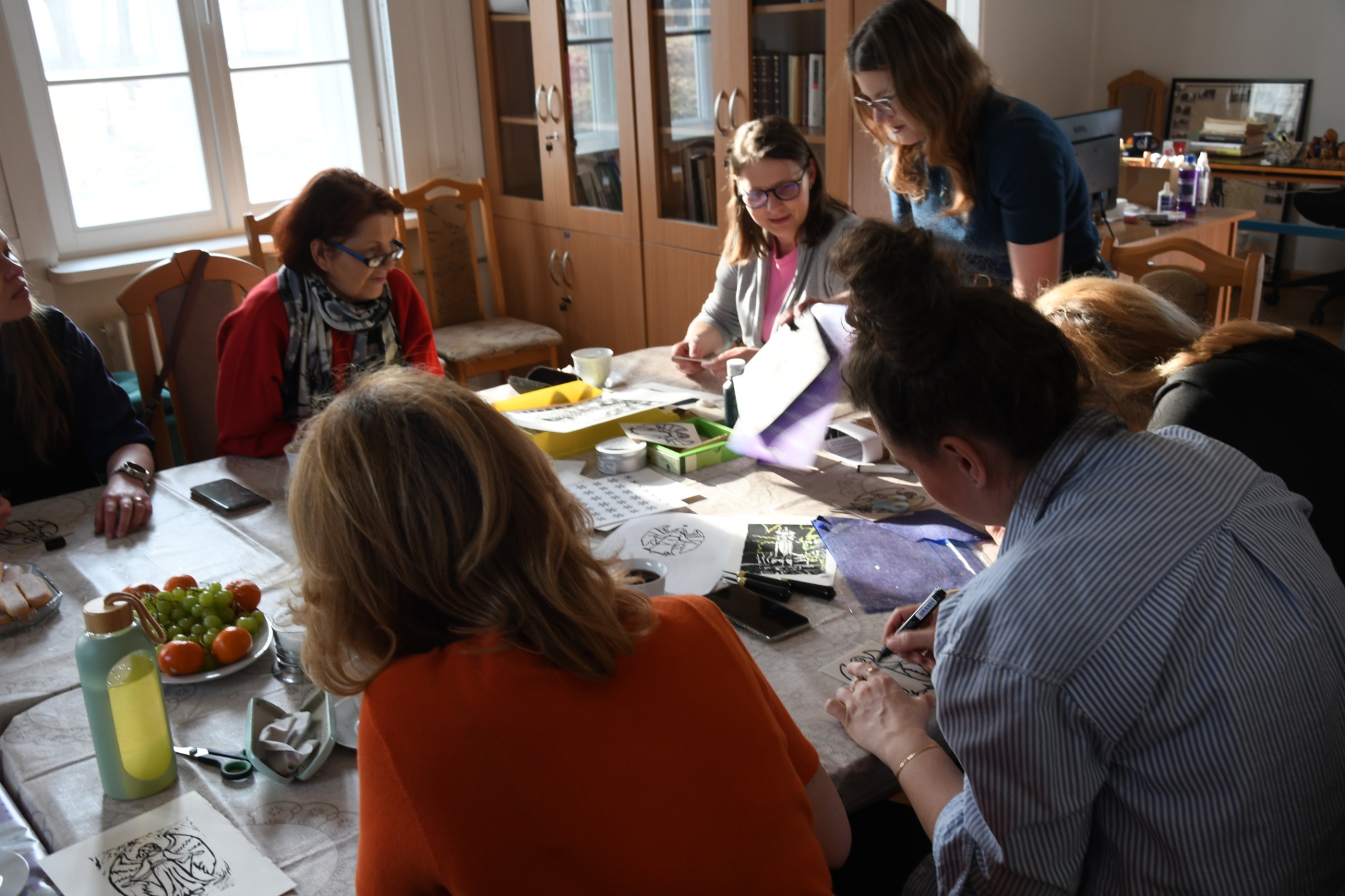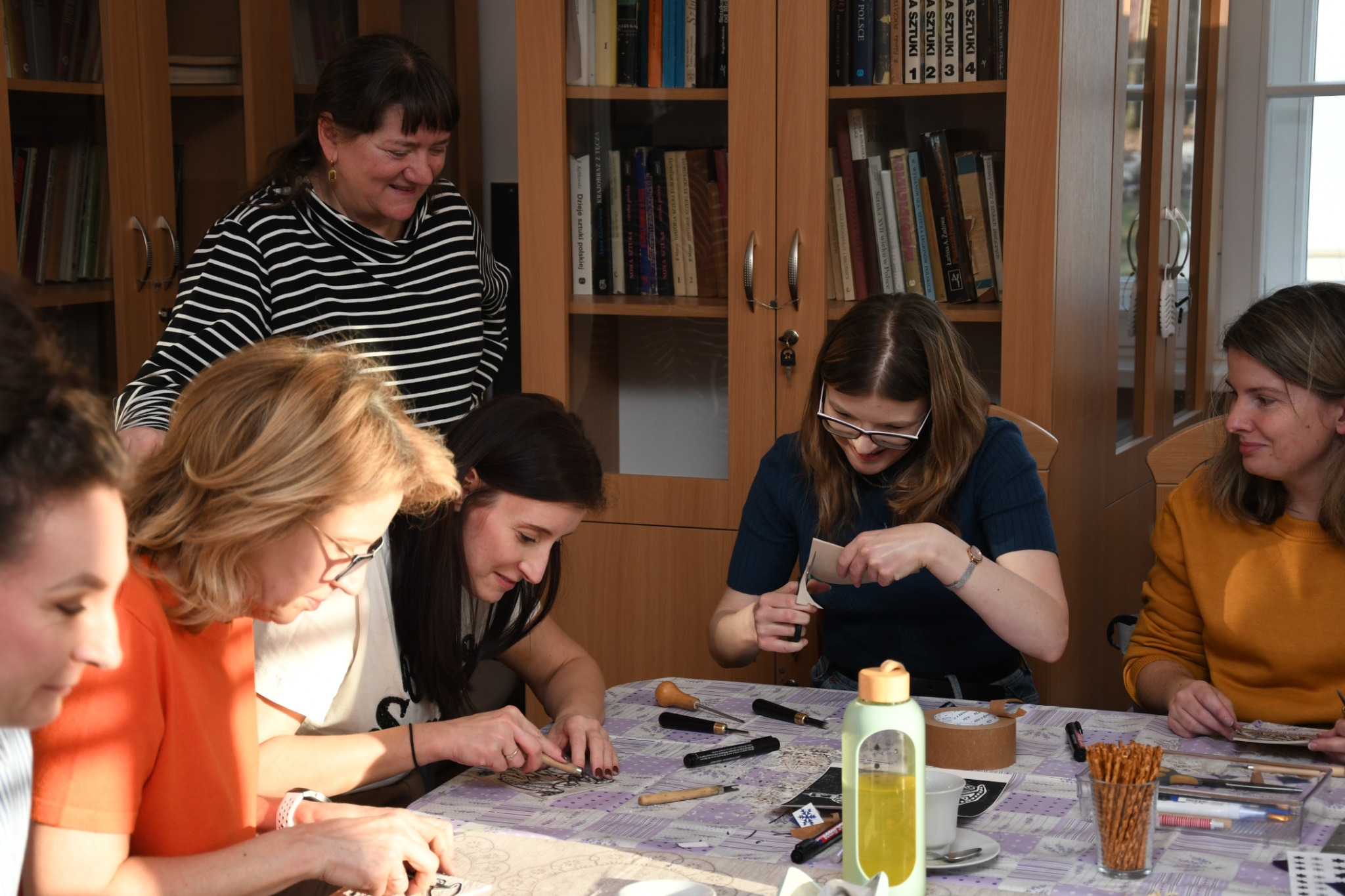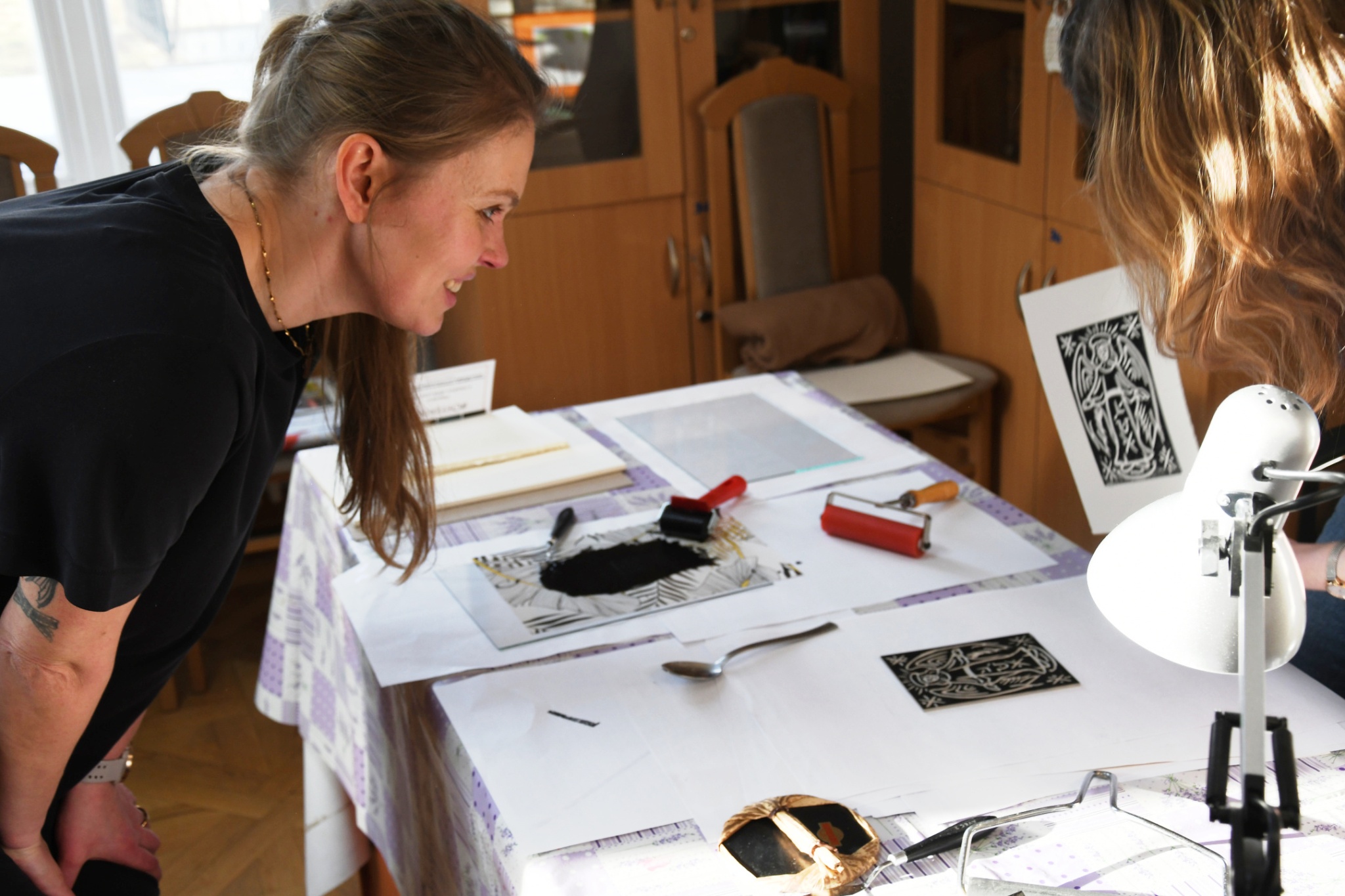 W niedzielę, 1 marca, po raz kolejny przeprowadziliśmy warsztaty z tworzenia linorytu. W przeciwieństwie do poprzednich, które odbywały się w ramach „Ferii dla dorosłych" i miały charakter otwarty, wczorajsze spotkanie przeznaczone było dla pracowników zaprzyjaźnionych instytucji, przede wszystkim filii Biblioteki Publicznej Gminy Kozienice.