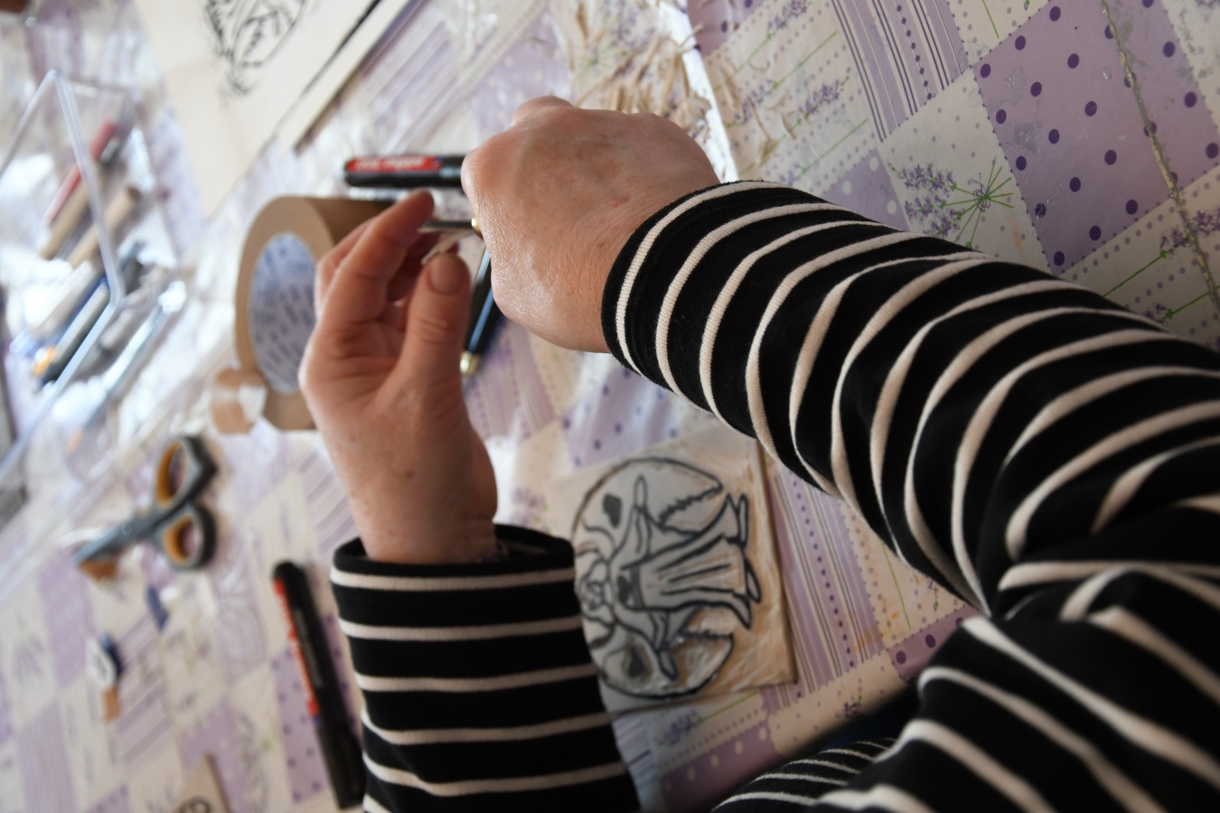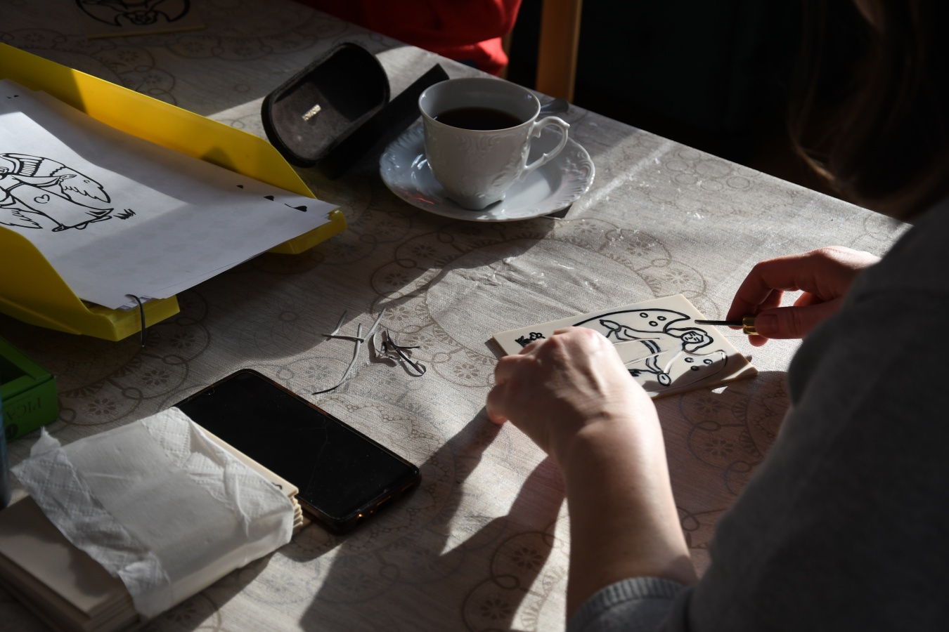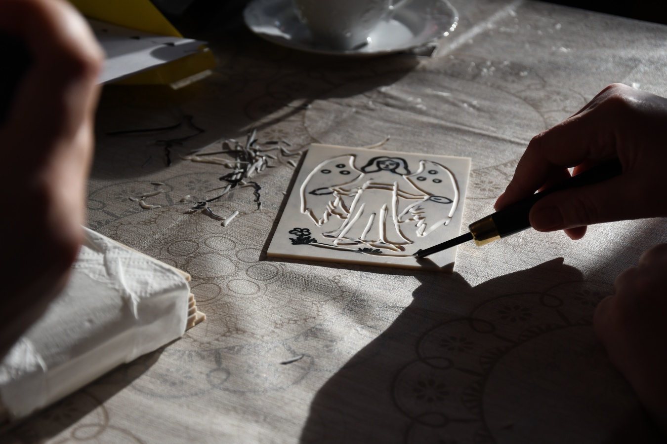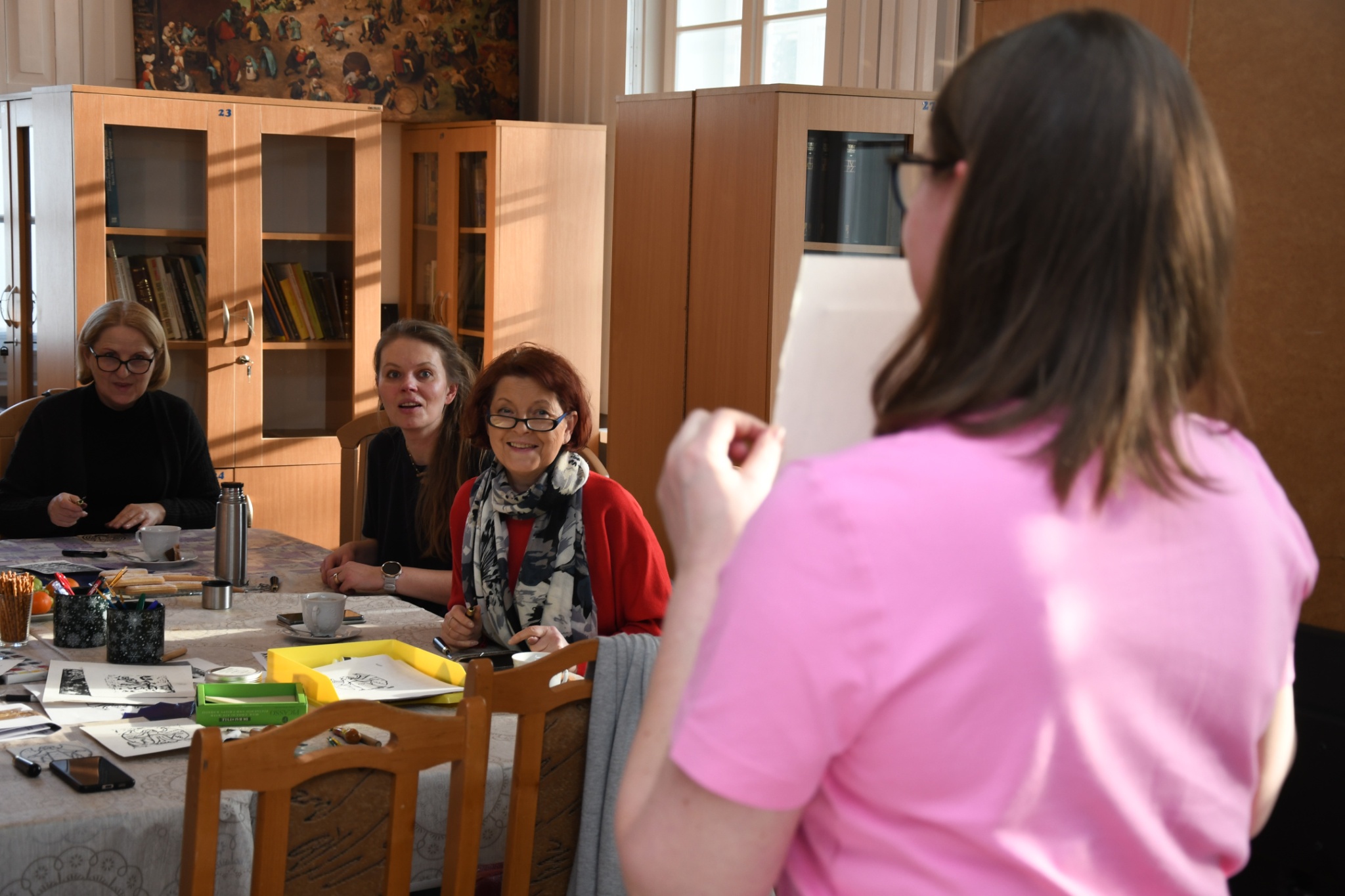 W niedzielę, 1 marca, po raz kolejny przeprowadziliśmy warsztaty z tworzenia linorytu. W przeciwieństwie do poprzednich, które odbywały się w ramach „Ferii dla dorosłych" i miały charakter otwarty, wczorajsze spotkanie przeznaczone było dla pracowników zaprzyjaźnionych instytucji, przede wszystkim filii Biblioteki Publicznej Gminy Kozienice.