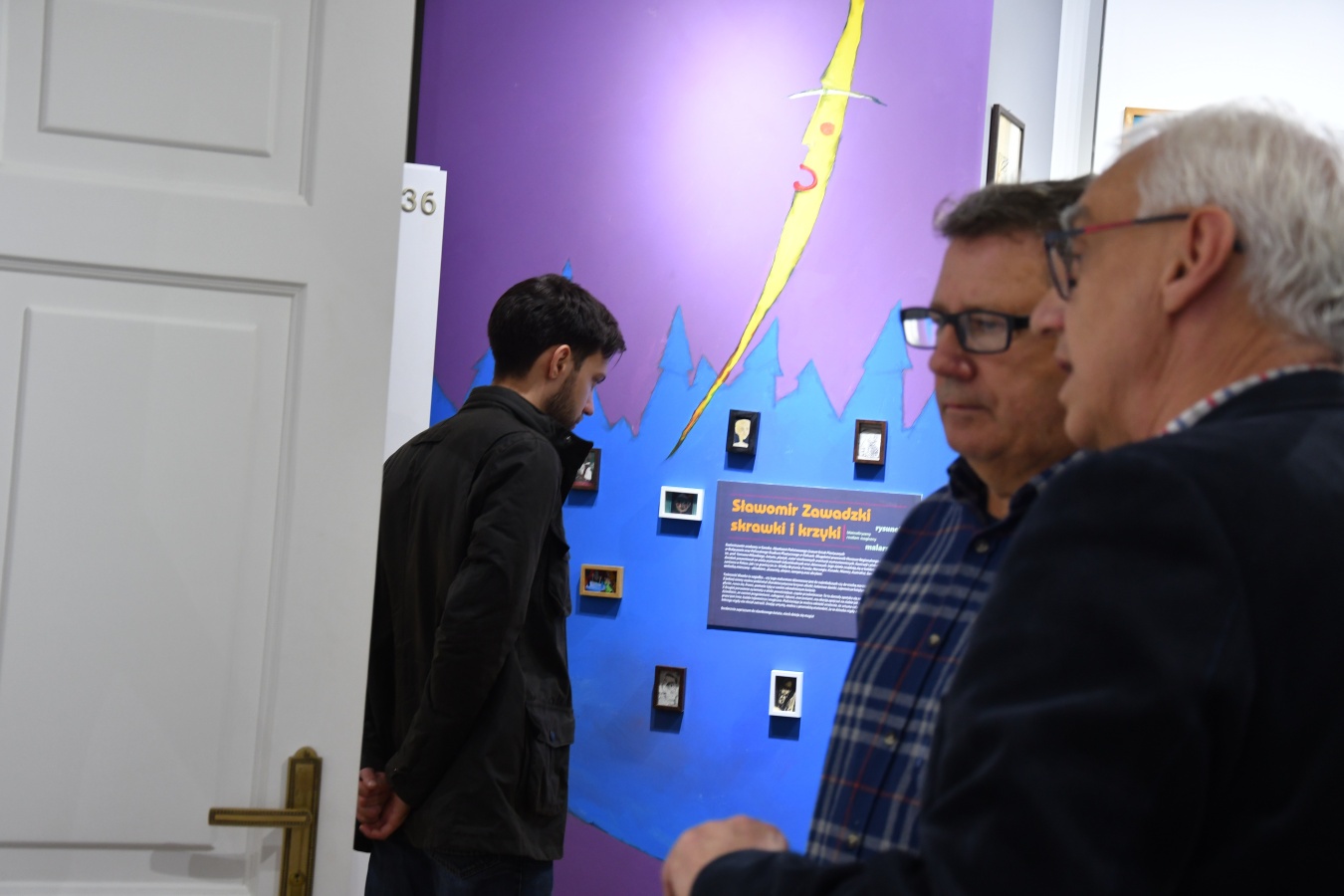 Wernisaż tradycyjnie otworzył dyrektor muzeum, Maciej Kordas. Następnie głos zabrała kurator wystawy Aleksandra Jarosz-Panek, podkreślając, że współpracuje z artystą od wielu lat, dzięki czemu rozumieją się niemal bez słów. Sławomir Zawadzki z kolei – zachęcony do opowiedzenia o kulisach pracy – zdradził, że wiele pomysłów najpierw zapisuje na niewielkich kartkach papieru, stąd w tytule słowo „skrawki" („krzyki" – to z kolei twórcza ekspresja). Część oficjalną spiął klamrą dyrektor, zauważając, że codzienną pracę można doceniać na wiele sposobów, lecz talent po prostu trzeba pokazać.