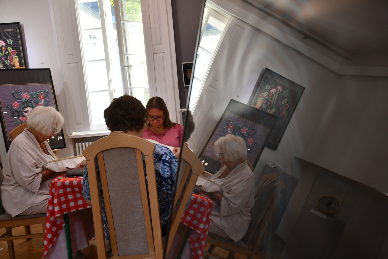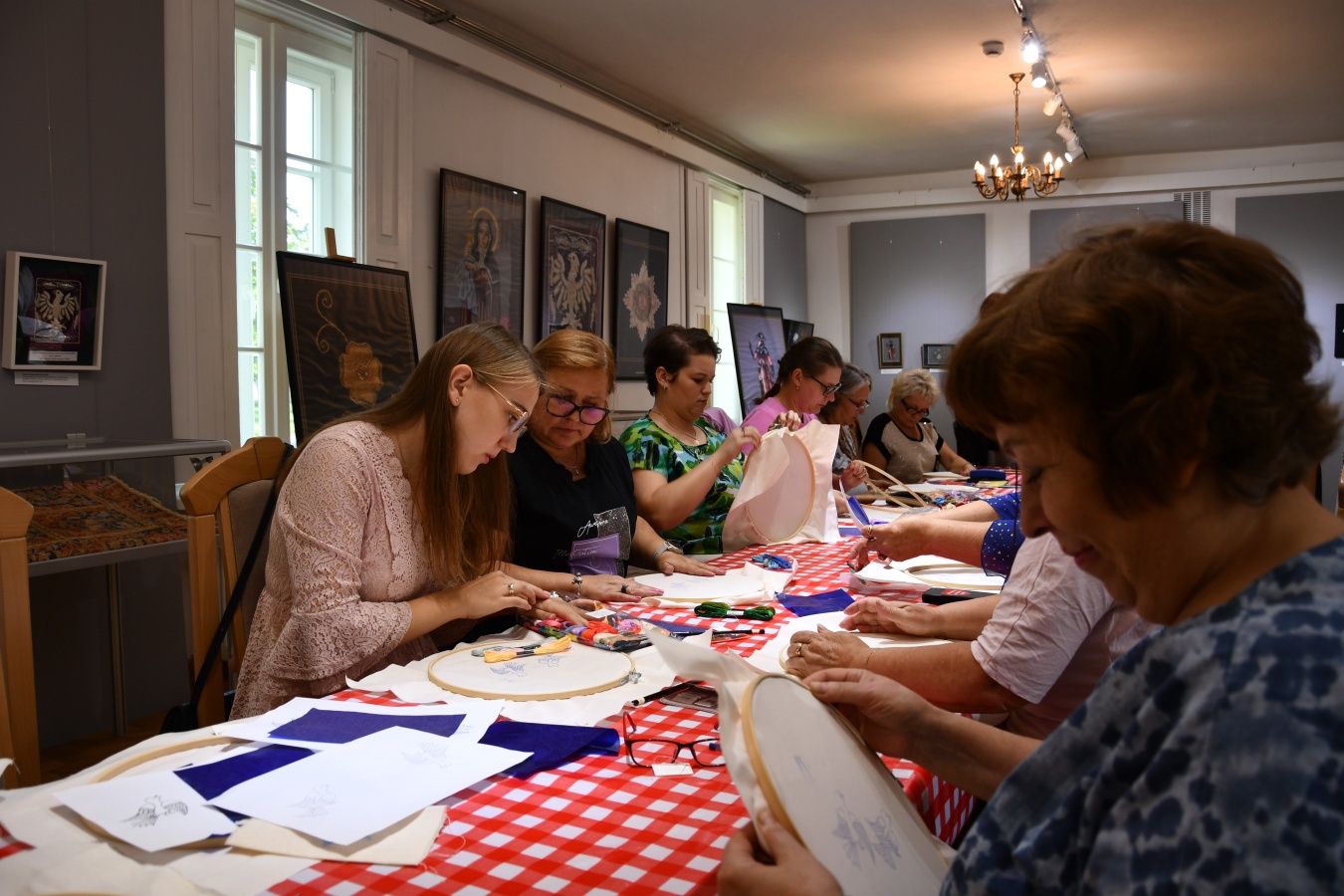 W weekend 20-21 września w naszym muzeum odbyły się warsztaty hafciarskie pod kierownictwem niekwestionowanej mistrzyni tej sztuki — Izabeli Brańskiej-Oleksy (Bellissima Embroidery) . Twórcze zmagania z tkaną materią miały miejsce w sali wystawowej, gdzie od marca prezentowana jest pierwsza indywidualna wystawa artystki, zatytułowana „Bellissima. Haft jak za królewskich czasów!". Jak wspomina kurator wystawy — Grzegorz Kocyk — organizacja warsztatów była od samego początku integralną częścią inicjatywy. W końcu podziwiać haft to jedno, a wykonać go własnoręcznie – to zupełnie inna jakość.